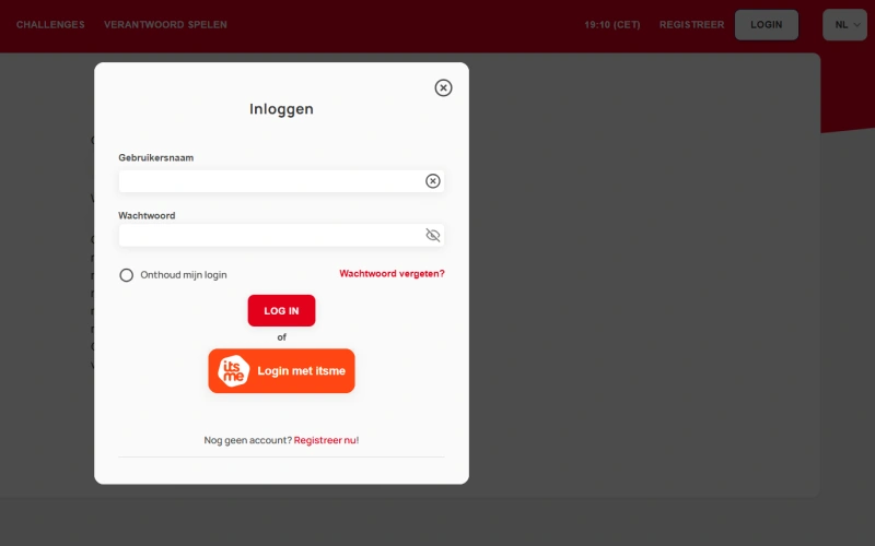 - Ga naar de officiële Bingoal website en klik op de registratieknop